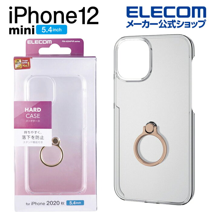 エレコム iPhone 12 mini 用 ハード ケース リング付き アイフォン 12 ミニ 新型 iPhone12 mini iPhone 2020 5.4 インチ ハード ケース カバー スマホリング ゴールド PM-A20APVRGD